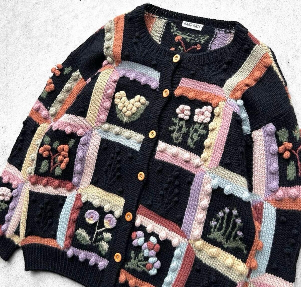 古着 vintage 80s - 90s unknown 花柄 3D 立体 編み込み ヴィンテージ ハンド ニット の出品になります!