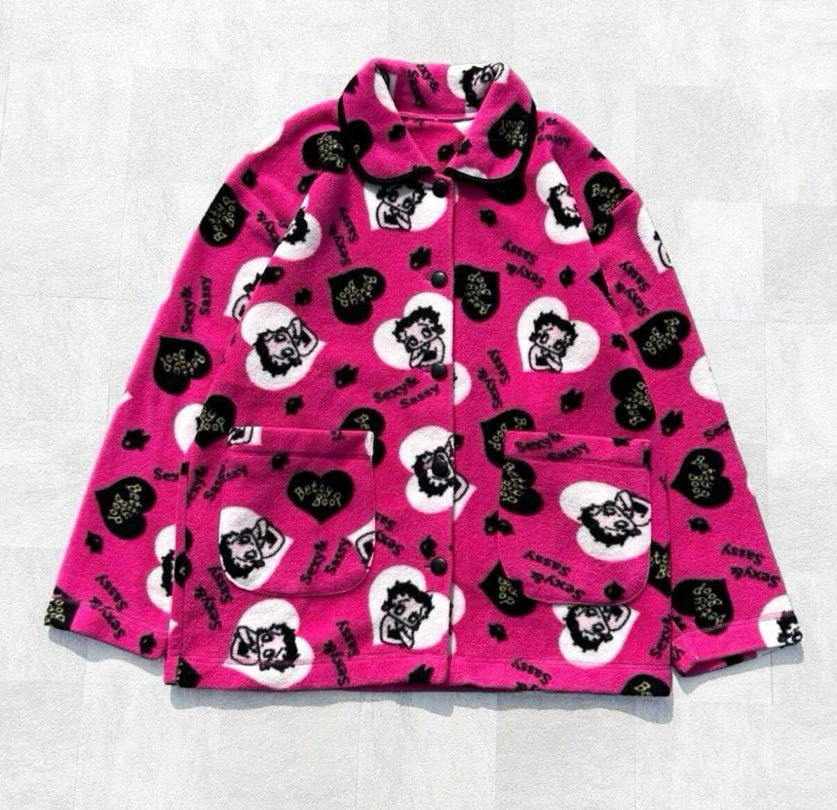 希少 80s 90s vintage Betty Boop ベティブープ 総柄 フリース ジャケット ヴィンテージ カーディガン の出品になります!