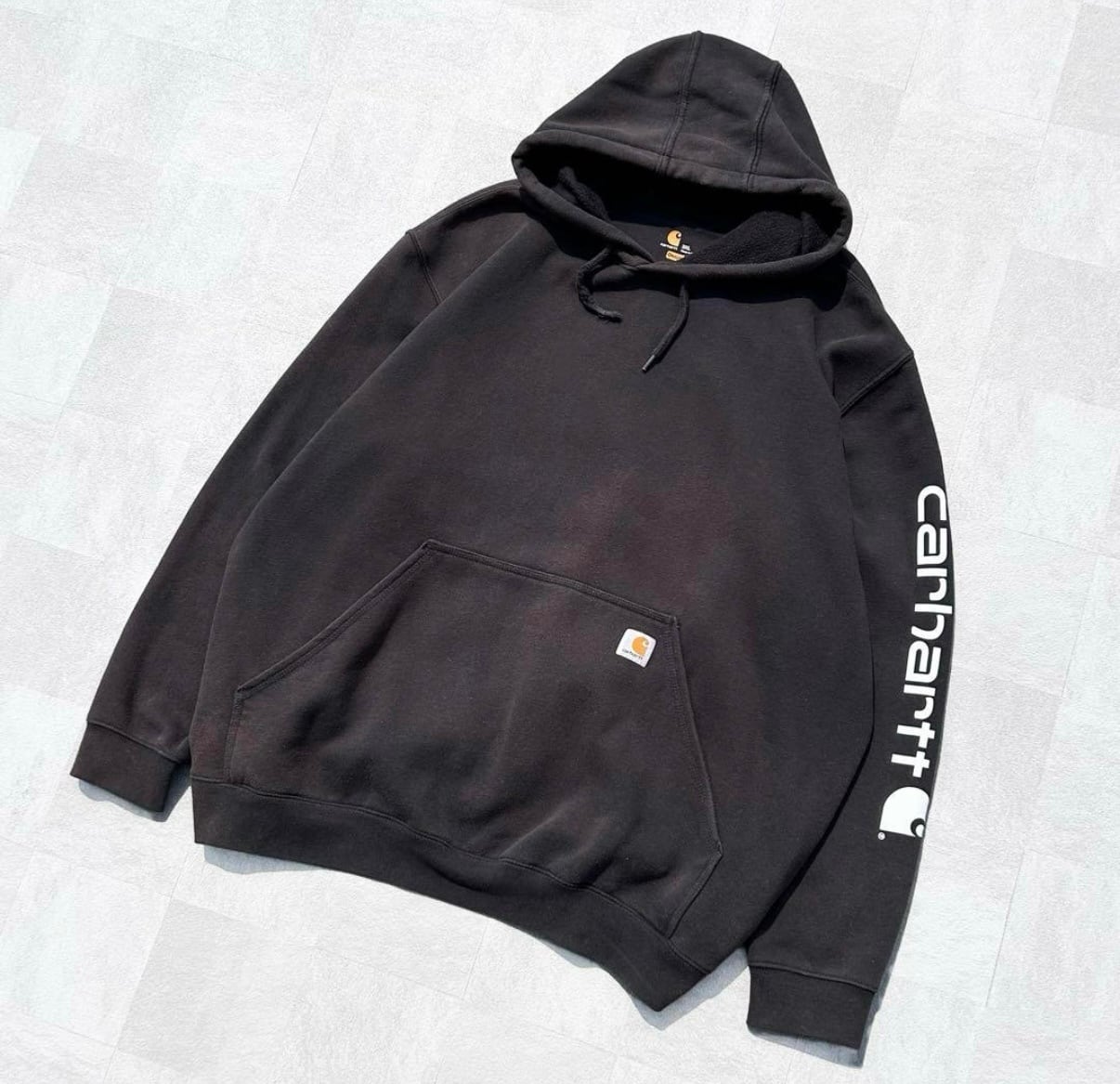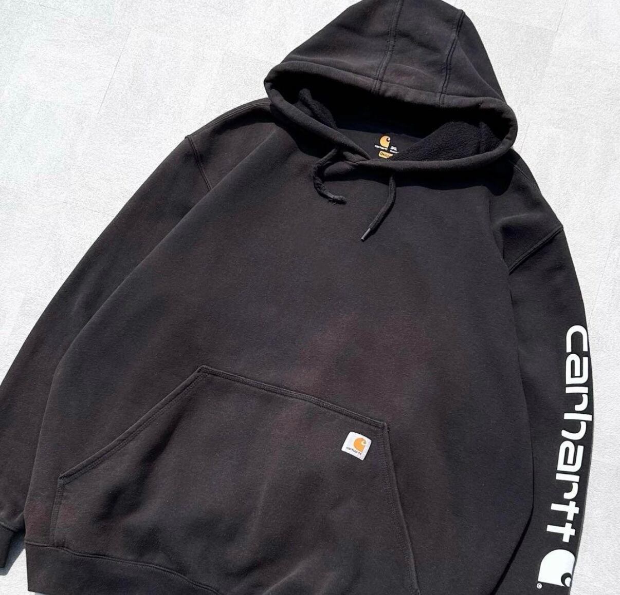 00s Carhartt カーハート 鬼フェード ロゴスリーブ 刺繍 スウェット パーカー の出品になります!
