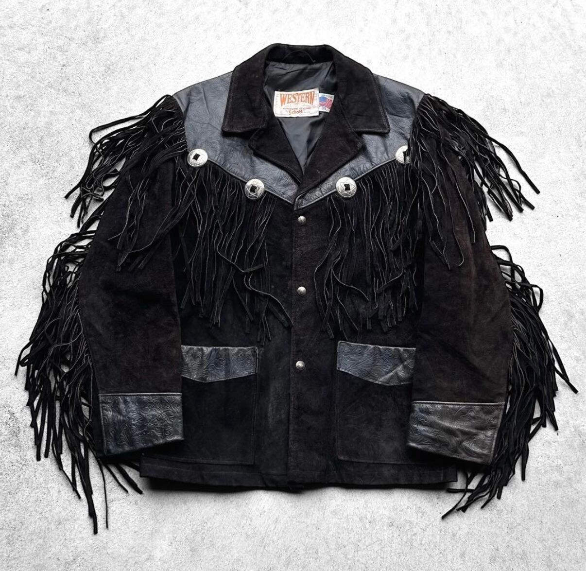 希少 80s - 90s vintage schott ショット 銀ボタン 加飾 フリンジ ウエスタン ヴィンテージ スウェード レザージャケット の出品になります!