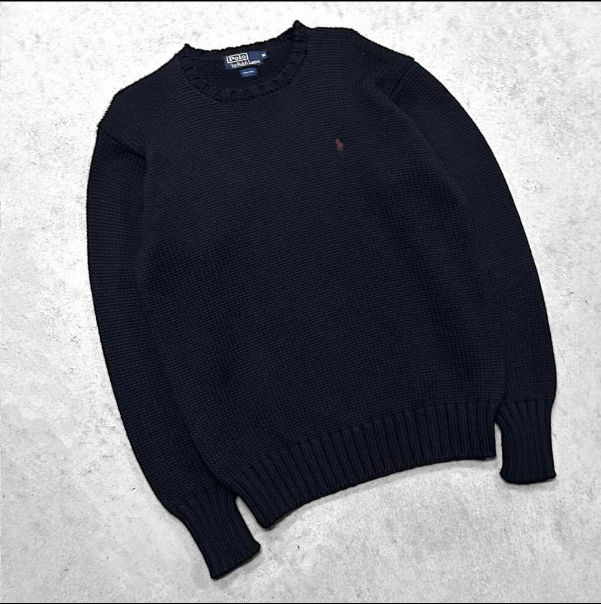 極美品 90s vintage ポロバイ ラルフローレン 刺繍ロゴ ニット セーター ローゲージニット 厚手 ハンドニット ニット セーター の出品になります!