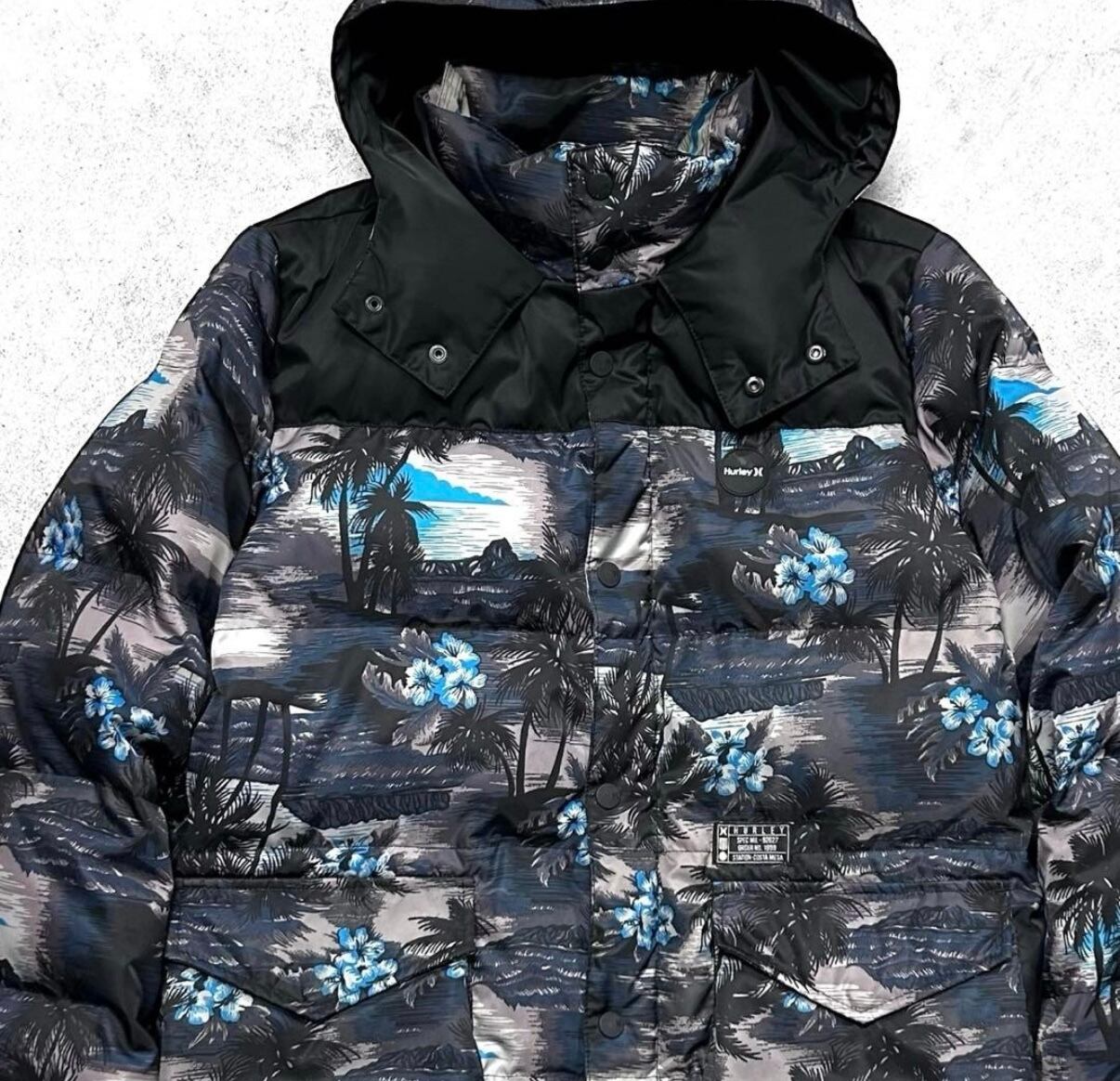 入手困難 Hurley ハーレー ハワイアンプリント 総柄 サーフ フード付 ダウンジャケット の出品になります!