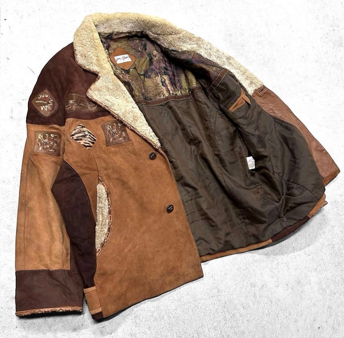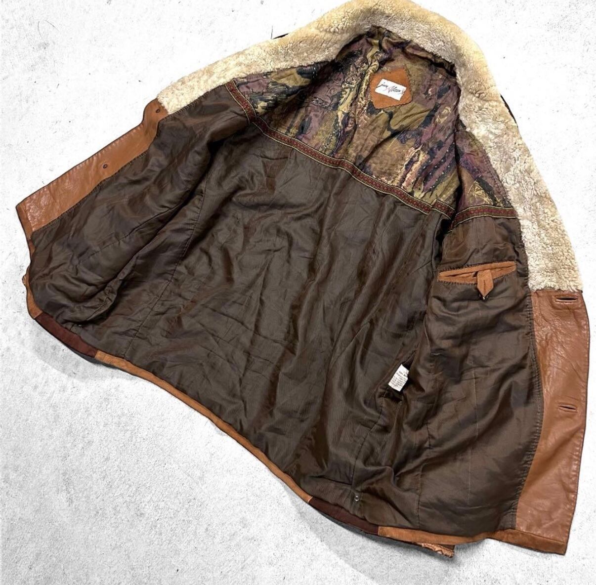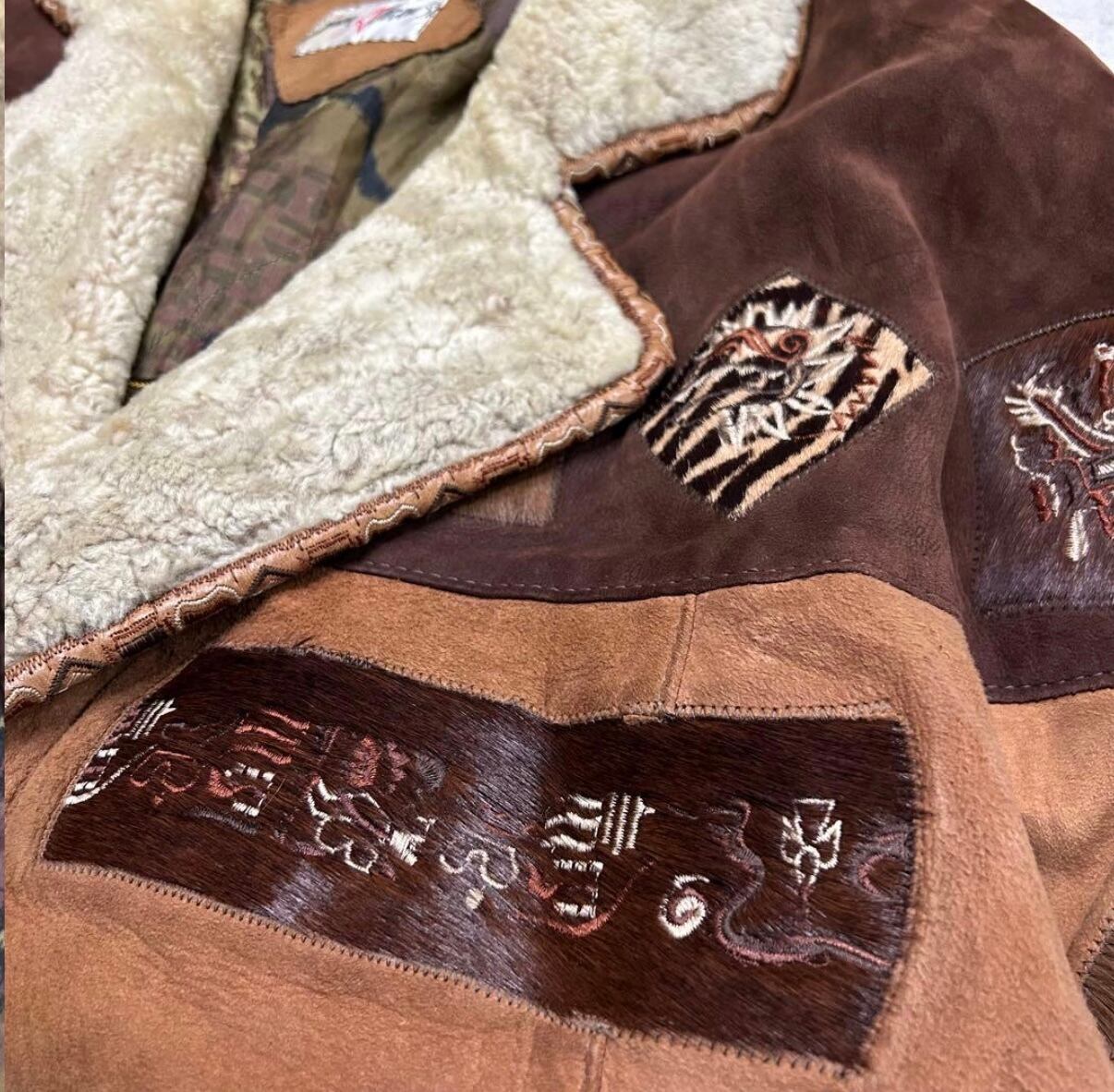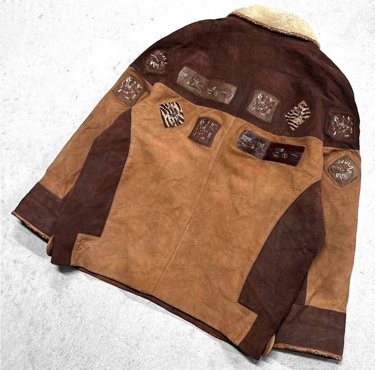 古着 80s - 90s vintage 民族 ノルディック ムートン スウェード 刺繍 ヴィンテージ レザージャケット の出品になります!