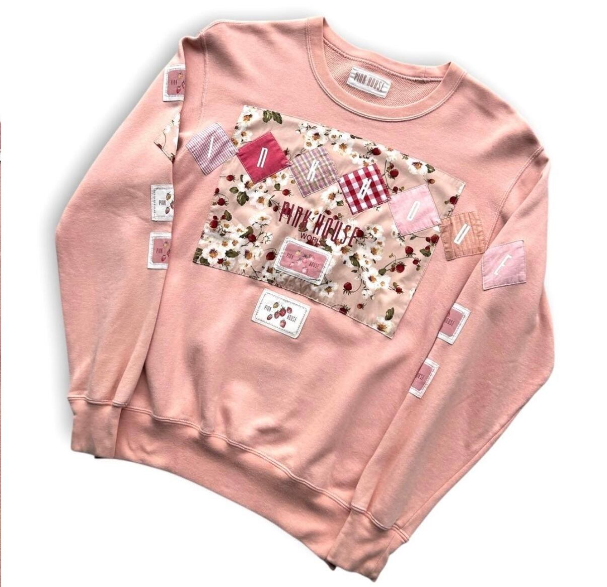 古着 90s - 00s vintage PINK HOUSE ピンクハウス パッチワーク 花柄 刺繍ロゴ ワッペン レトロ ヴィンテージ スウェット トレーナー の出品になります!