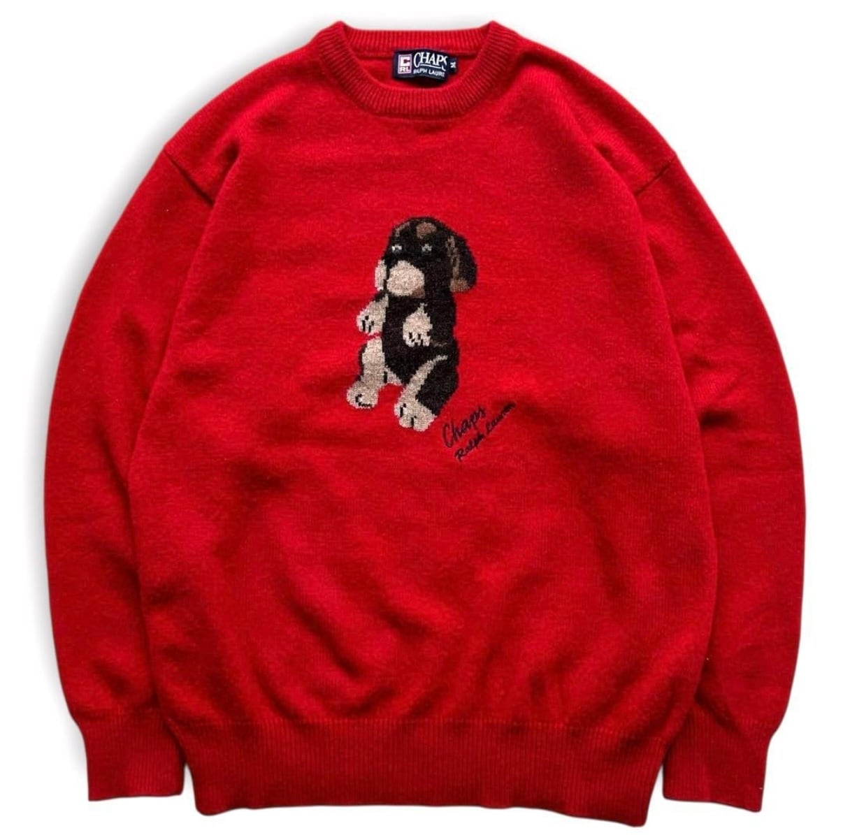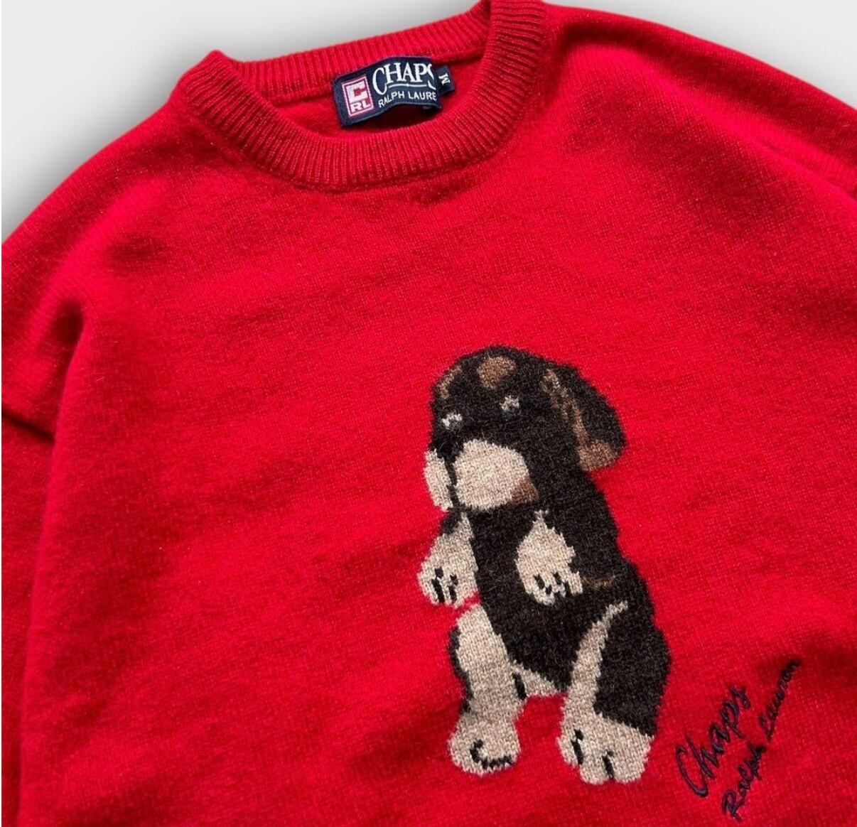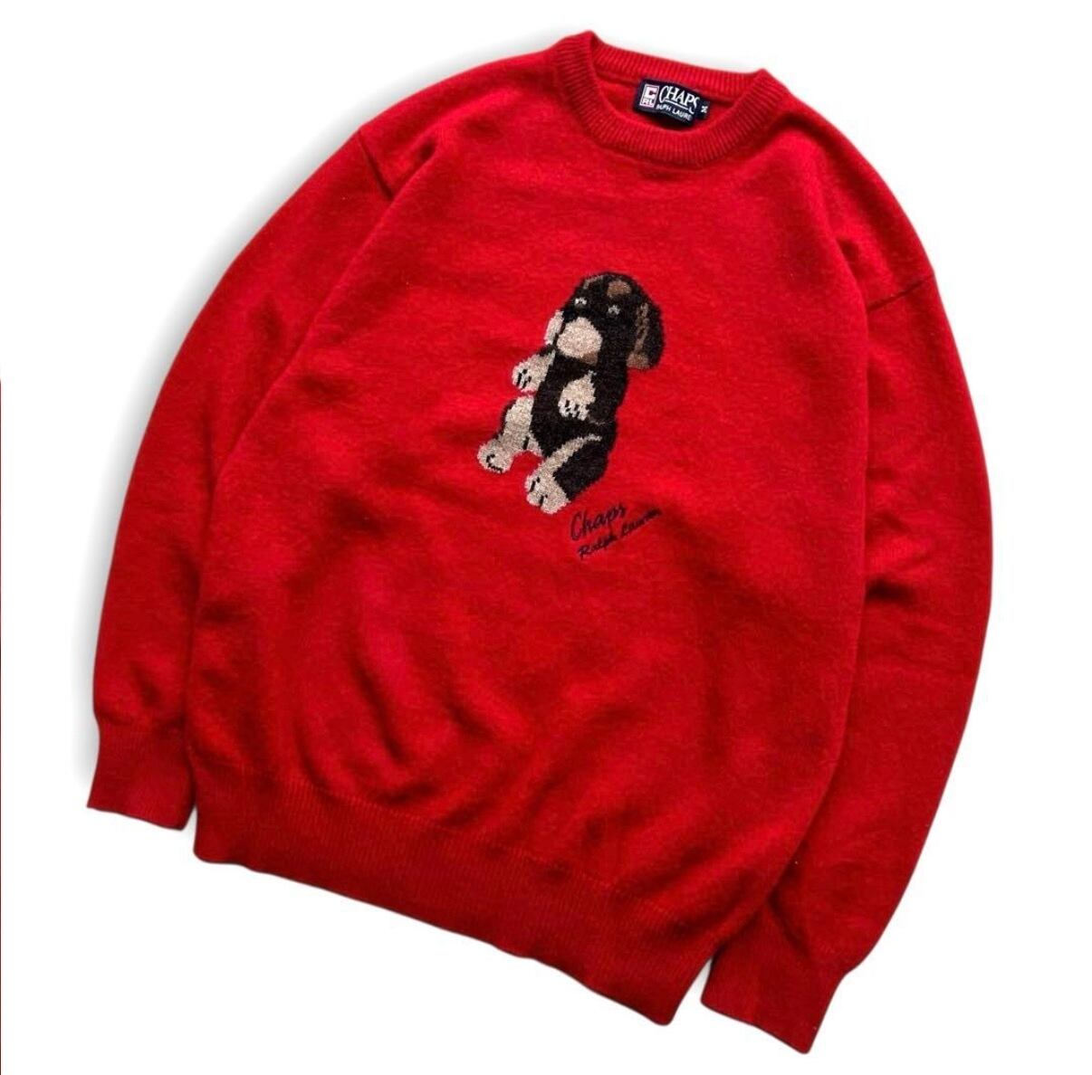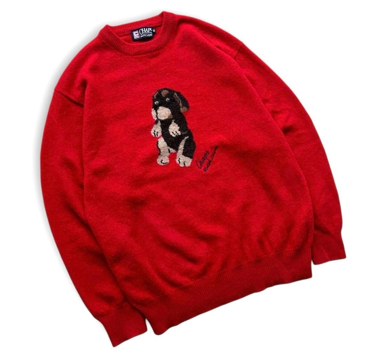 希少 90s CHAPS RALPH LAUREN アニマル 犬 刺繍 ニット