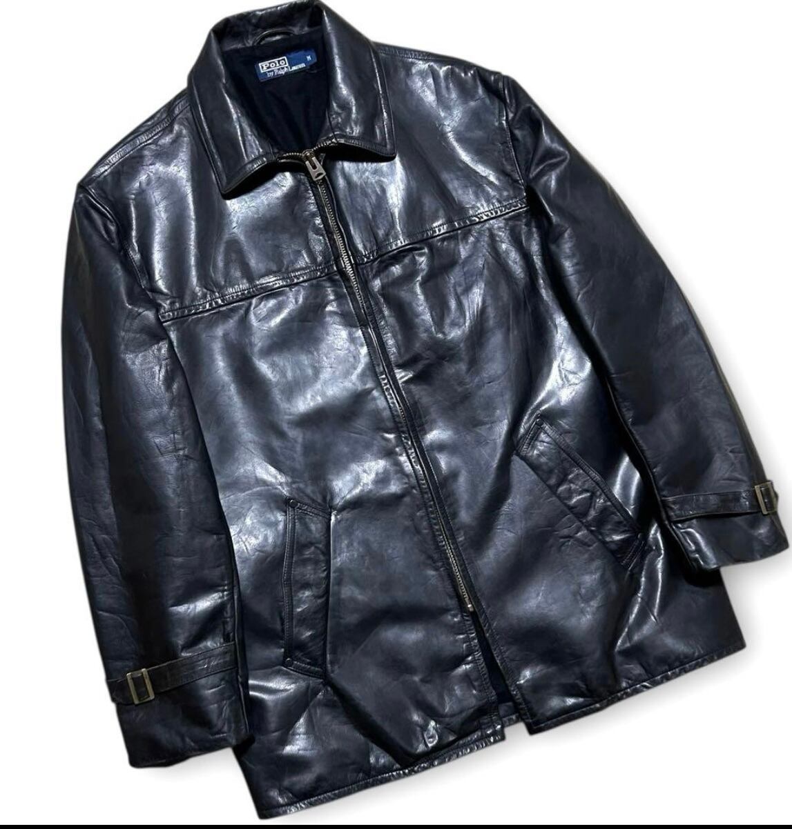 美品 90s Polo Ralph Lauren 光沢 レザーカーコート