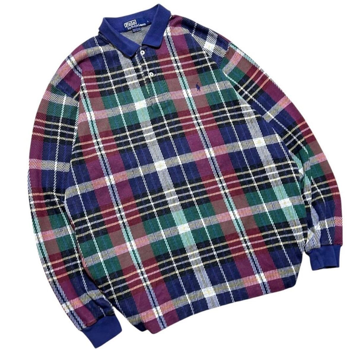 希少 USA製 米国製 90s vintage ポロラルフローレン チェック柄 ジャガード マドラス 長袖 ラガーシャツ ポロシャツ の出品になります!