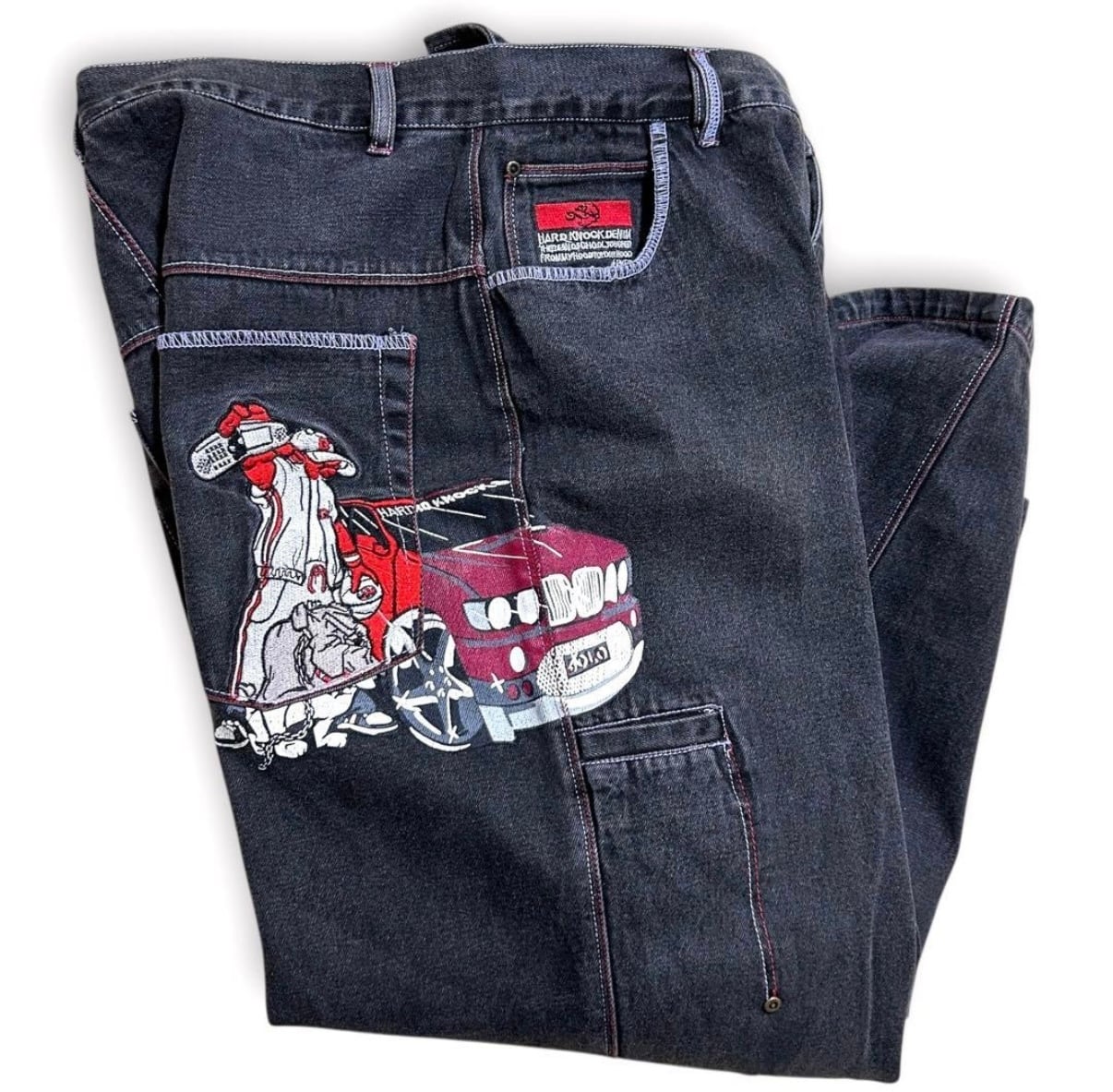 SOHK ショック 36インチ 刺繍 B-BOY B系 極太 ブラックデニム