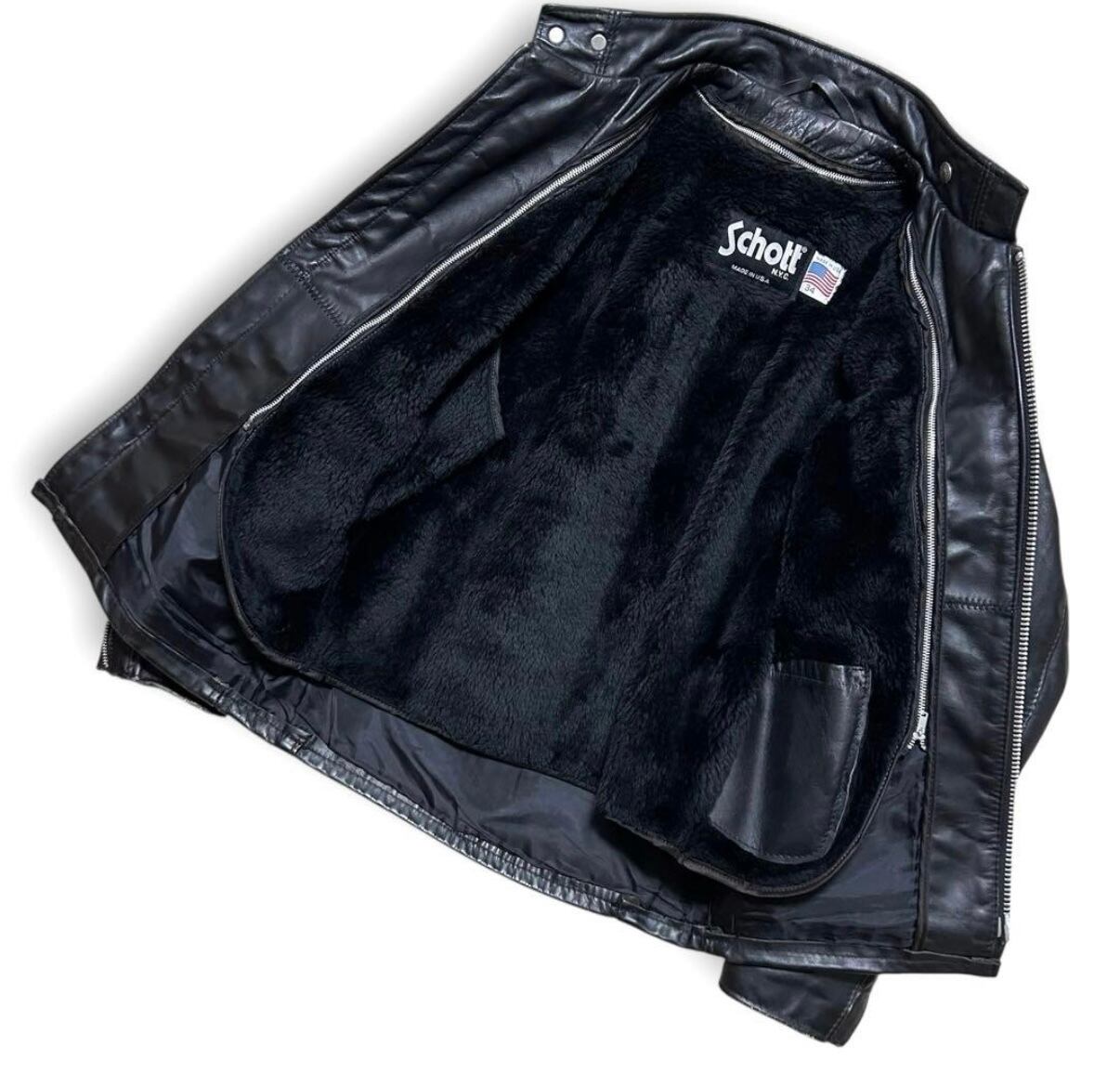 Schott 641 レザー シングルライダース ボアライナー付 34 ブラック