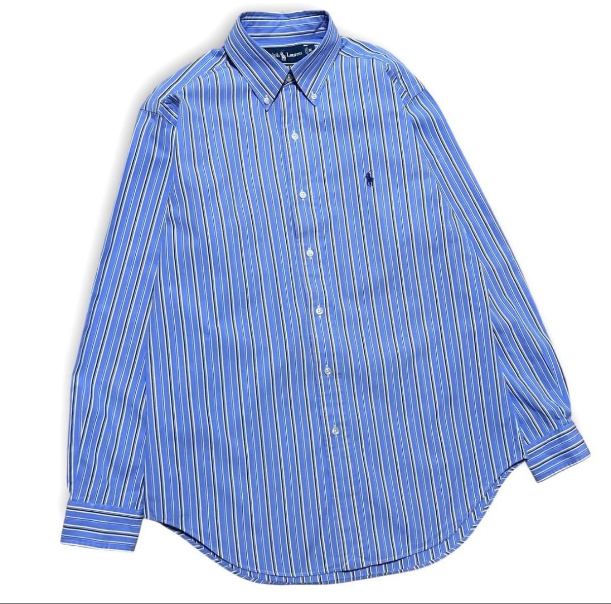 美品 90s ラルフローレン 刺繍ロゴ オックスフォードストライプ BDシャツ
