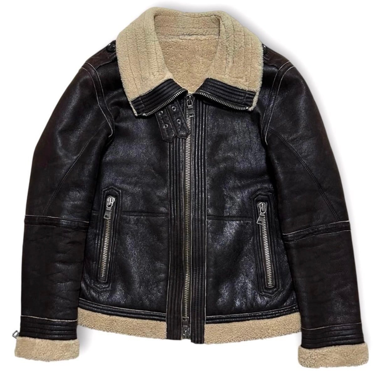 美品 BURBERRY BLACK LABEL バーバリー ブラック レーベル リアル ムートン B-3レザージャケット フライトジャケット の出品になります!